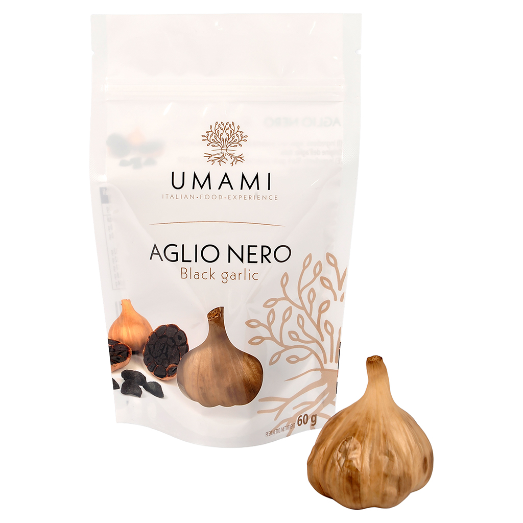 Ingredienti:Aglio nero italiano ottenuto attraverso maturazione termica a temperatura controllata da Aglio bianco.